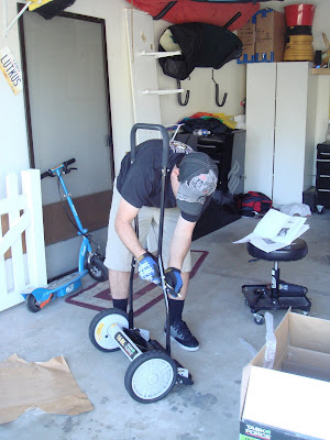 So as you you all know, the master bedroom in our new house was painted pink. Well, as much as I love the color pink, it just didn't go with our decor. I thought about buying new decor to go with the paint, but since Mark LOVES painting so much(*), if figured why not just paint. ;) Also, since Brooke's room wasn't a neutral color, we painted in there as well. Saturday morning, we got Brooke's room knocked out pretty quick. Then we started onto our room. We only got half way done on Saturday, which was fine, because we were able to let that one half dry, then move all the furniture over to that half of the room. On Sunday, we, well, Mark, finished the second half. It came out really nice and I am VERY happy.